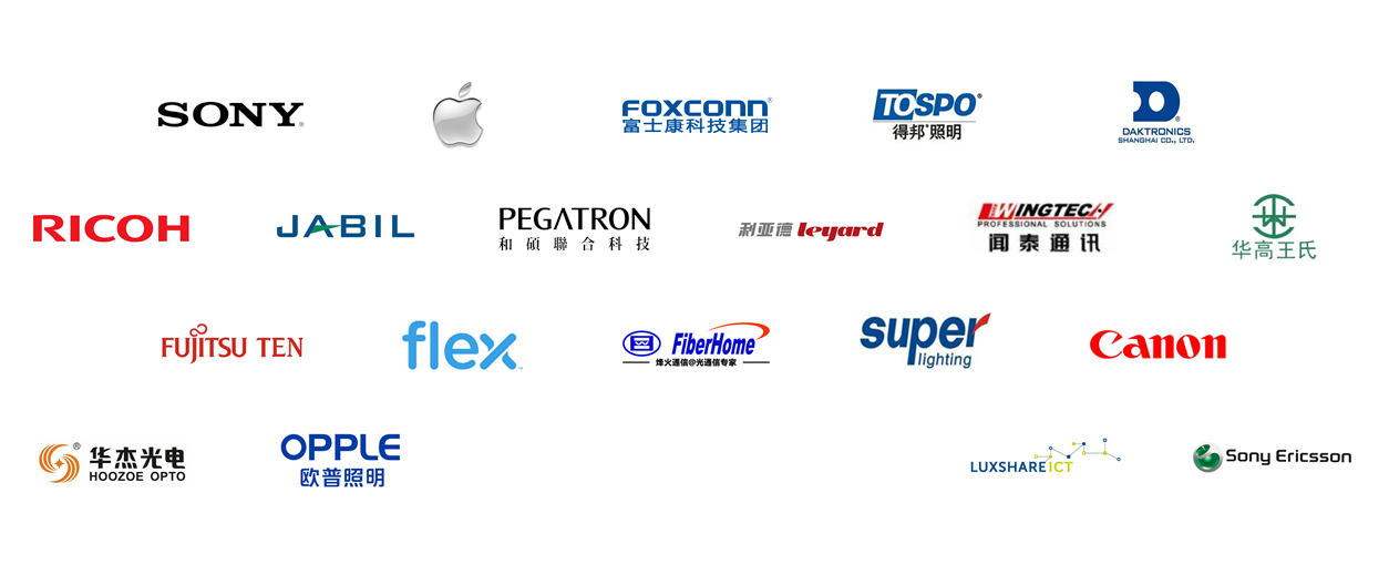 DVD組裝老化生產(chǎn)線、二次電源柔性生產(chǎn)線、變頻器組裝線、UPS組裝生產(chǎn)線、大型物流回收輸送線及各類(lèi)型表面貼裝周邊設(shè)備