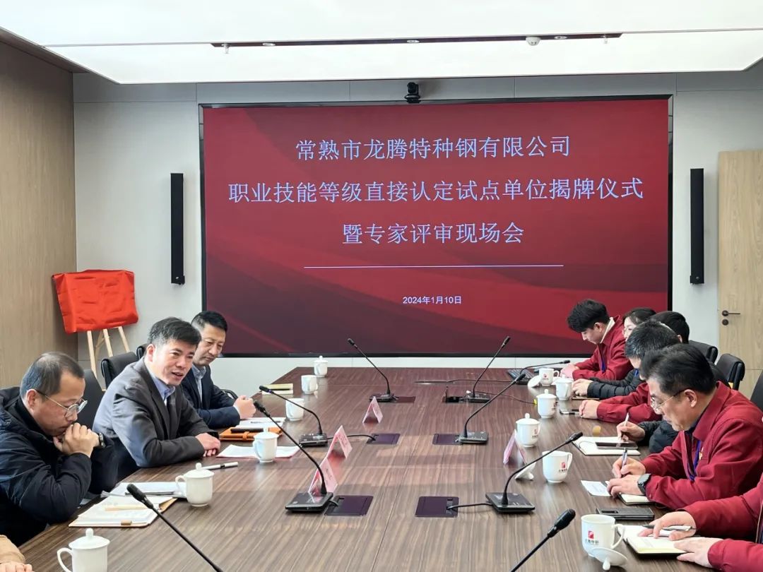 1月10日,龍騰特鋼隆重舉行常熟市龍騰特種鋼有限公司職業(yè)技能等級直接認定試點單位揭牌儀式,并現(xiàn)場進行了首次直接認定的專家評審會,成功開創(chuàng)常熟市首家擁有職業(yè)技能等級直接認定資質(zhì)的試點單位。