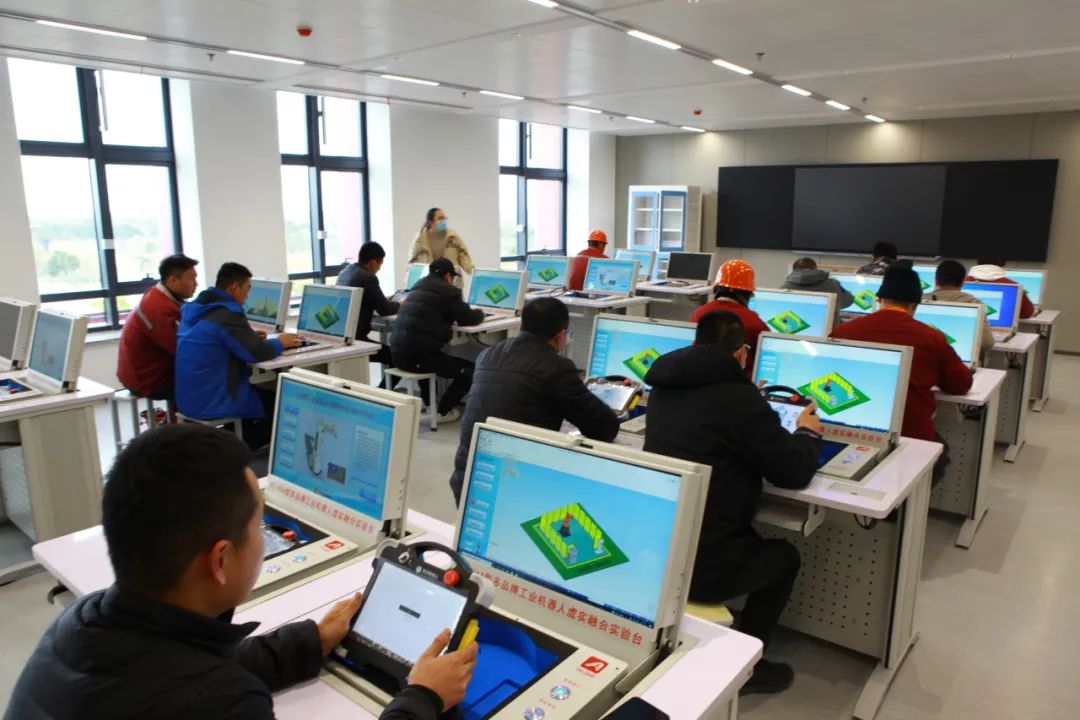 自2020年公司取得技能等級自主認定資質(zhì)以來,每年都積極開展培訓(xùn)和考試工作,從當(dāng)初的三個工種擴展到現(xiàn)在20個工種,四年來累計認定各類工種涵蓋初級工到高級技師共855人。2023年,公司投資建設(shè)實訓(xùn)中心,聚焦圍繞智能制造,按機電、虛擬仿真、機加工中心等3大類進行設(shè)備配置,設(shè)有工業(yè)機器人實訓(xùn)室、工業(yè)控制實訓(xùn)室等9個實訓(xùn)室和2個實訓(xùn)區(qū)。培訓(xùn)教室采用軟硬件模塊化架構(gòu)設(shè)計,根據(jù)實際工作場景,搭建一體化教學(xué)區(qū),實現(xiàn)從理論到應(yīng)用、從仿真到實操的系統(tǒng)性、綜合性技能訓(xùn)練,為員工建立了完善的技能提升環(huán)境。
