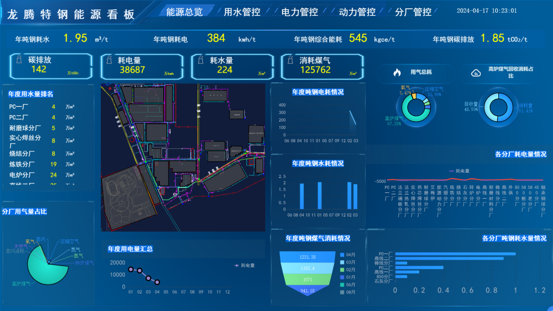 調(diào)整轉(zhuǎn)爐程序工藝,實(shí)現(xiàn)噸鋼氧氣消耗低于48立方米。通過HMI 人機(jī)界面和 PLC 控制程序,實(shí)現(xiàn)轉(zhuǎn)爐不同吹煉階段靈活切換,年節(jié)省除塵風(fēng)機(jī)運(yùn)行電量270萬千瓦時。準(zhǔn)時化排產(chǎn)系統(tǒng),轉(zhuǎn)爐出鋼溫度平均降低6℃,有效減少轉(zhuǎn)爐工序的冶煉能耗。建立特鋼生產(chǎn)全過程的能耗數(shù)據(jù)采集及優(yōu)化調(diào)度信息平臺,便于數(shù)據(jù)采集分析和方案制定,推動整個公司節(jié)能降耗與碳減排。