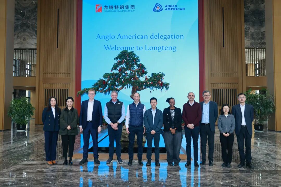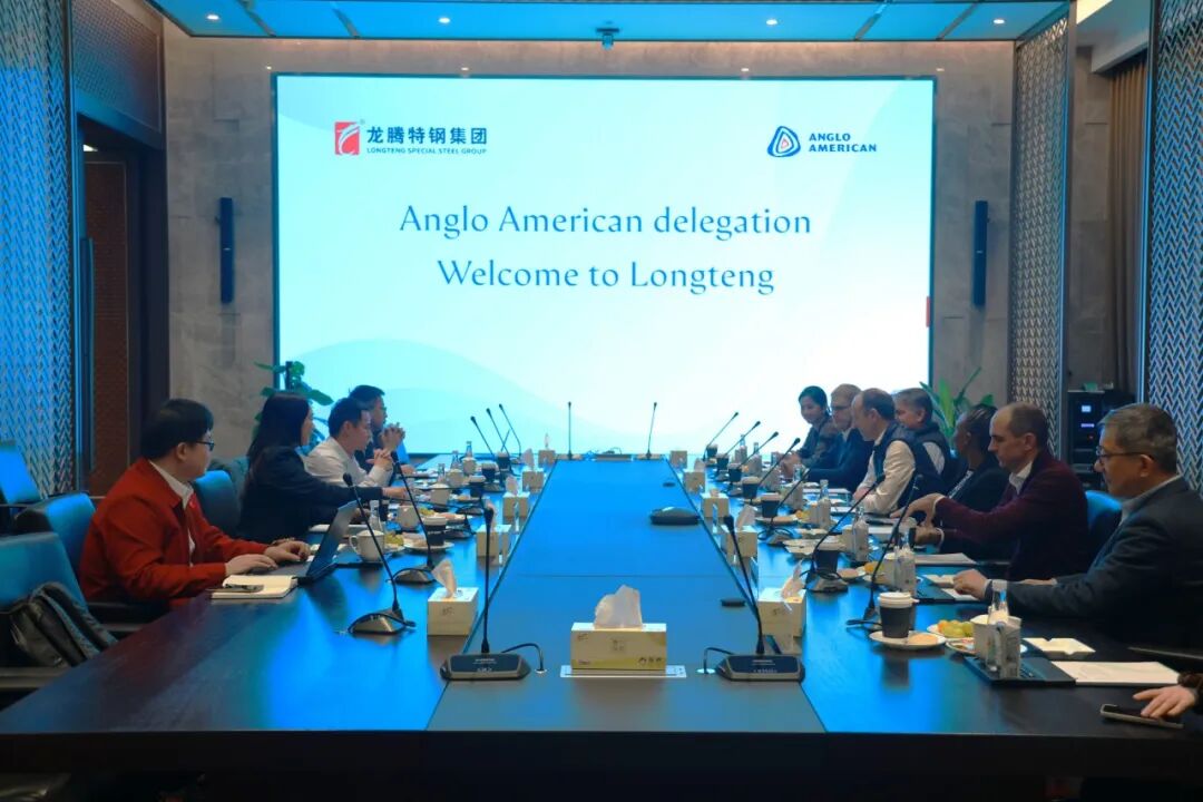 2026年3月25日,全球領(lǐng)先礦業(yè)公司英美資源(Anglo American)高層代表團一行到訪江蘇龍騰特鋼集團開展考察交流。此次來訪由英美資源董事、首席財務官John Heasley先生帶隊,成員包括秘魯區(qū)域首席執(zhí)行官Tony Power先生、南非區(qū)域首席執(zhí)行官Mpumi Zikakala女士、供應鏈高級副總裁Charles O'Donnell先生等在內(nèi)的8位管理層代表。江蘇龍騰特鋼集團黨委副書記、總裁徐勝先生及下屬團隊出席并接待來訪嘉賓。